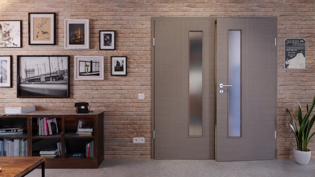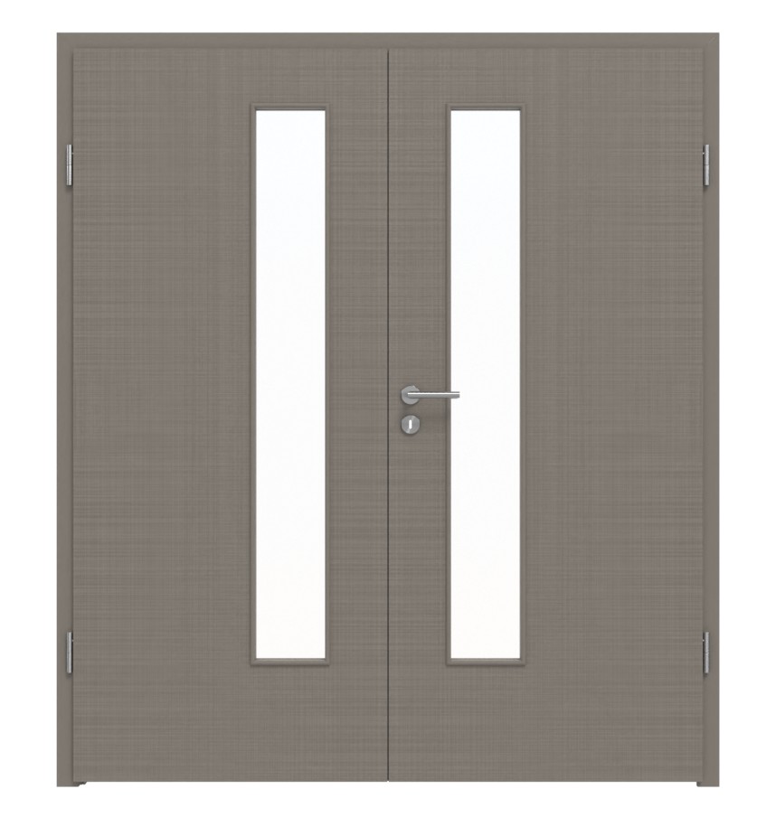 Uderzenia nie mają dużego wpływu na model, ponieważ wewnątrz 40 mm grubości skrzydła drzwiowego znajdują się płyty wiórowe. Oprócz podwójnego skrzydła drzwiowego otrzymasz w przesyłce bogaty zestaw z ościeżnicą, zamkiem wielozadaniowym, listwami szklanymi i dwuczęściowymi zawiasami.