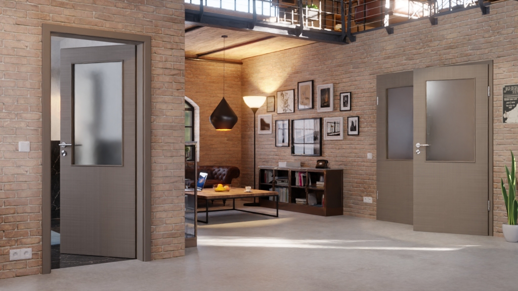 Na szaro-brązowym dekorze tekstylnym ciągną się delikatne linie, które są reliefowo wytłoczone w warstwie wierzchniej. Powierzchnia, oprócz autentycznego wyglądu, charakteryzuje się wysoką odpornością na zarysowania i ścieranie. Dzięki dużemu oknu świetlnemu w górnej części skrzydła drzwi, model wprowadza do Twojego wnętrza otwartość i przejrzystość.