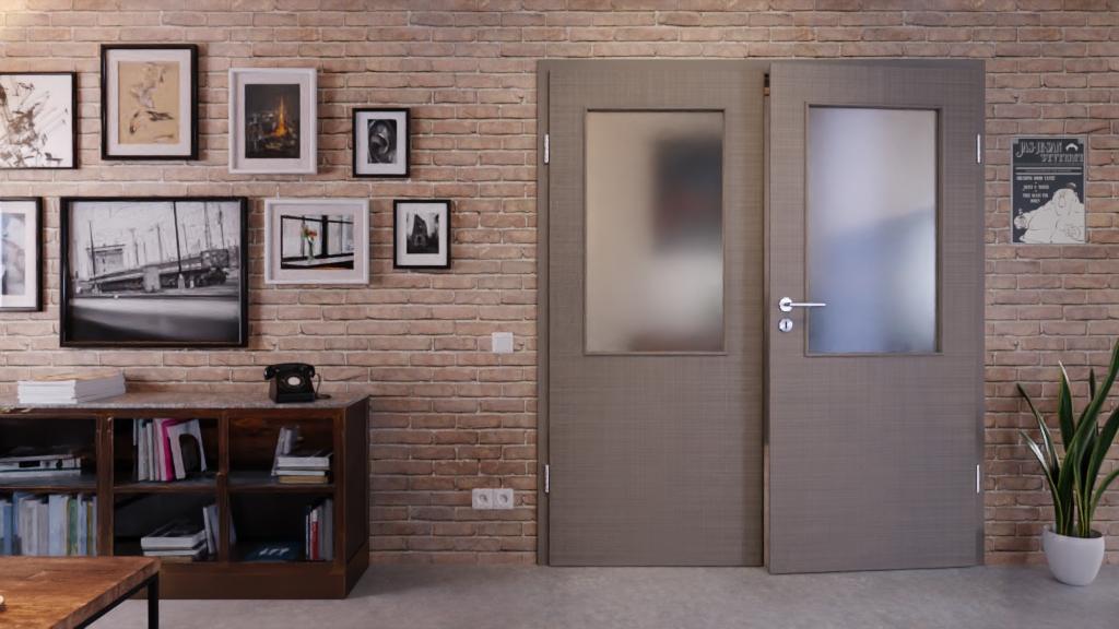 Drzwi podwójne z otworem świetlnym i odporną na ścieranie powłoką: