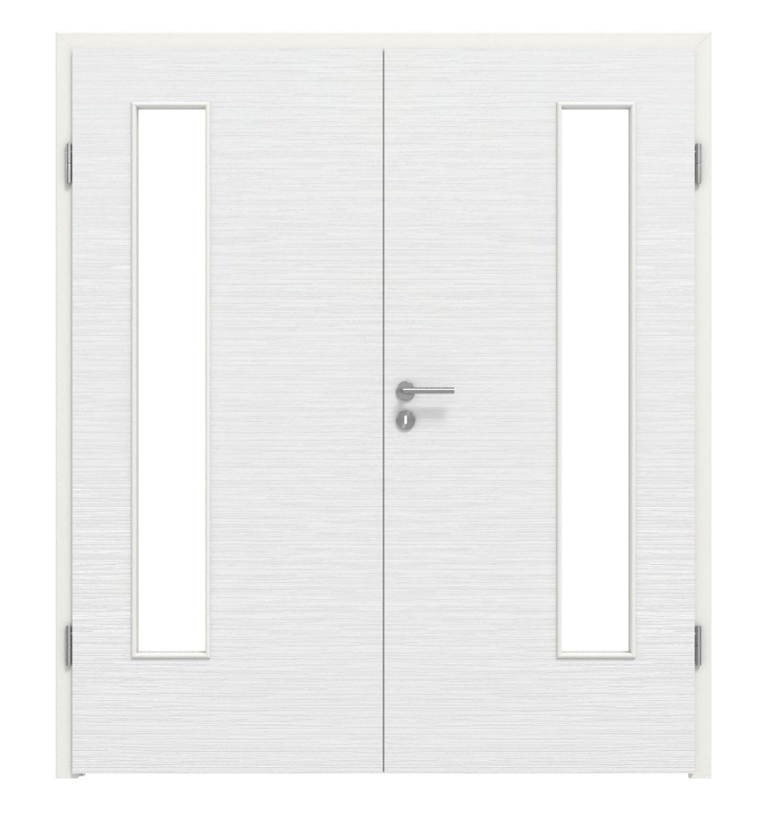 LEBO drzwi 2-skrzydłowe biel strukturyzowana podobna do RAL 9016 Versio z przeszkleniem LA 24 po stronie zawiasów z ościeżnicą