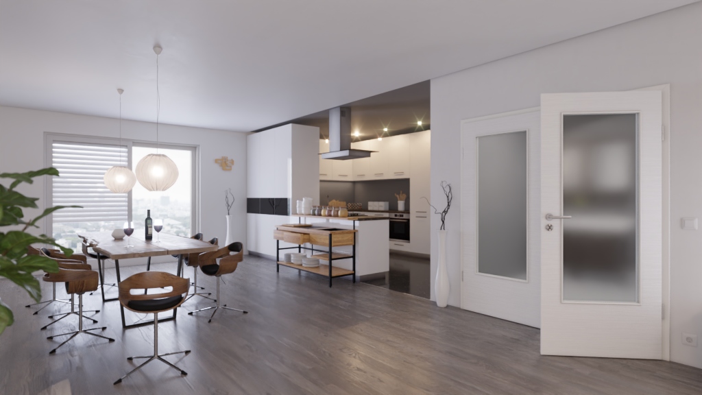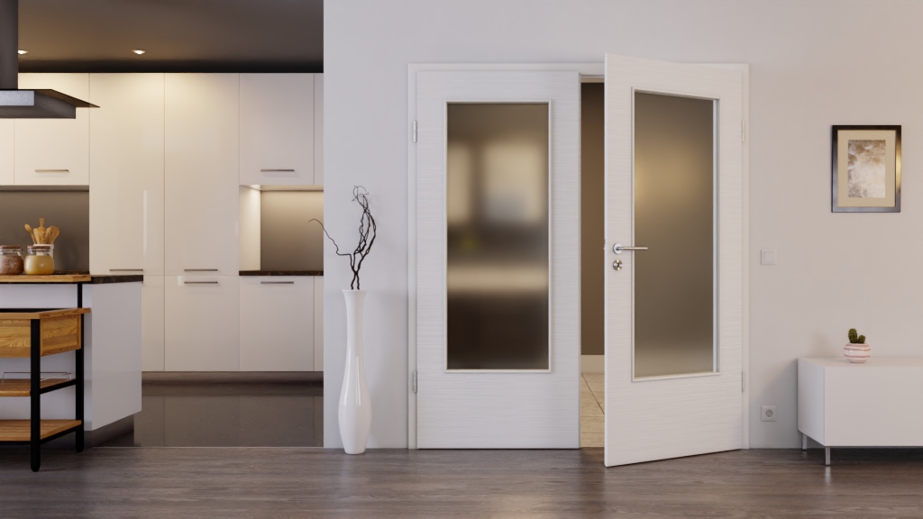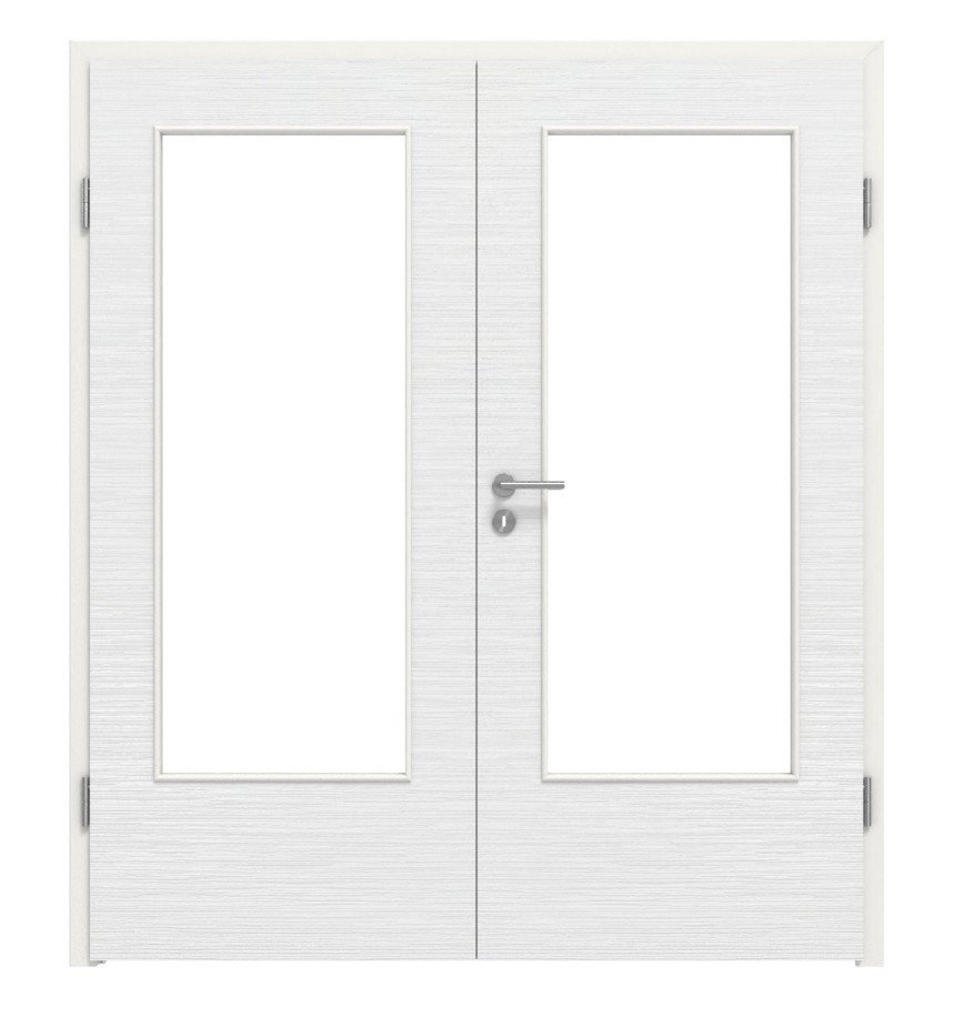 Model drzwi podwójnych z przeszkleniem i odporną na ścieranie powierzchnią: