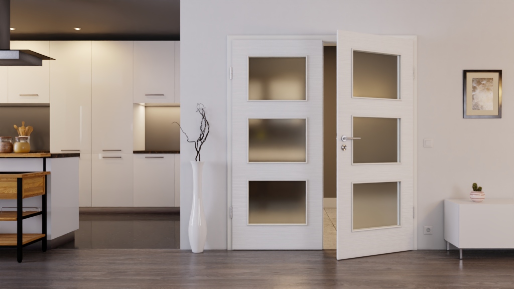 Dwuskrzydłowy model drzwi o przezroczystym charakterze i odpornej na UV powłoce: