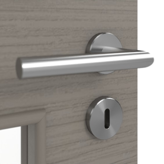 Uderzenia nie robią modelowi prawie żadnej krzywdy, ponieważ wewnątrz 40 mm grubości skrzydeł drzwiowych znajdują się płyty wiórowe pełne. Już w standardzie otrzymujesz oprócz ościeżnicy, listew szklanych i zamka z kluczem wielozadaniowym cztery 2-częściowe zawiasy drzwiowe.