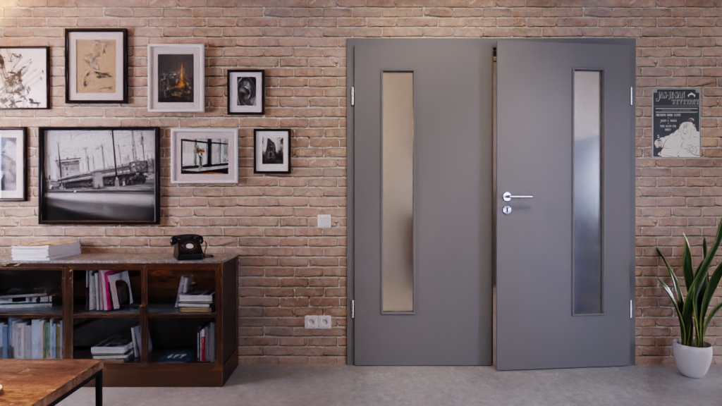 Drzwi wewnętrzne podwójne z otworem świetlnym i odporną na zarysowania powłoką: