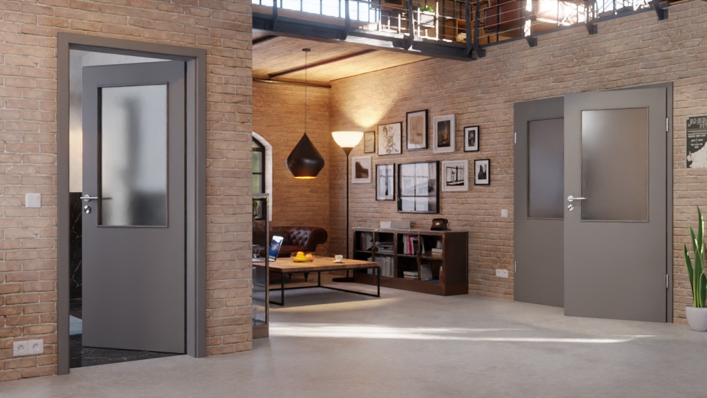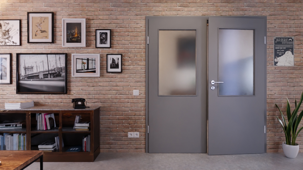 Drzwi podwójne z przeszkleniem i warstwą wierzchnią odporną na UV:
