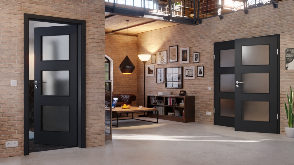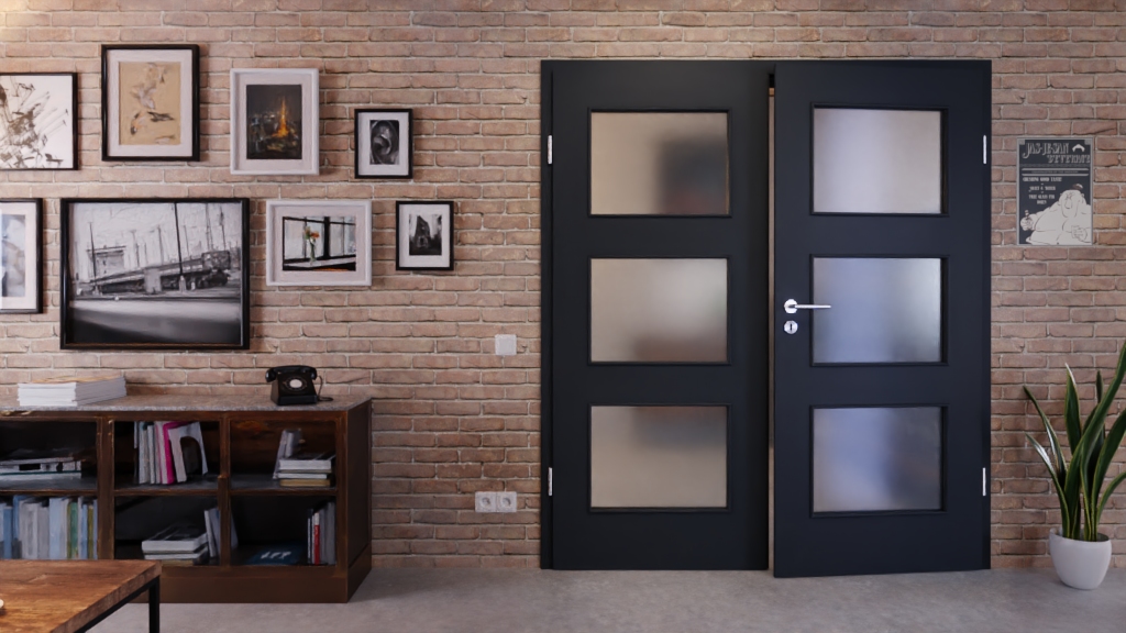 Dwuskrzydłowy model drzwi z wlotem szklanym i dekoracją odporną na UV: