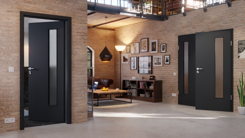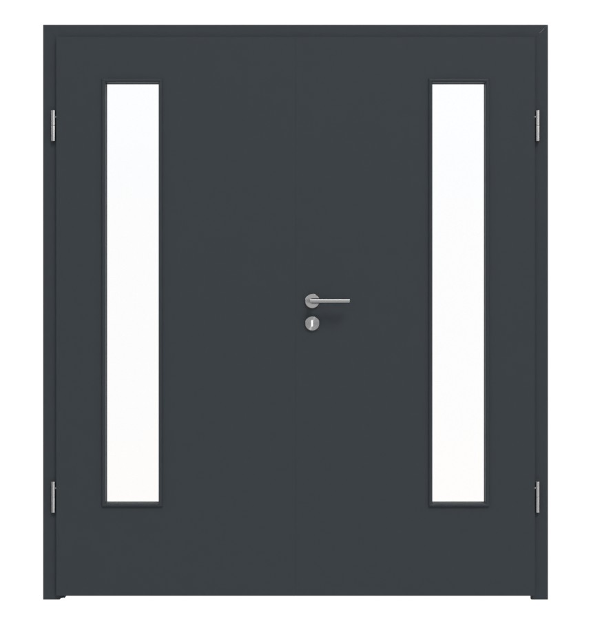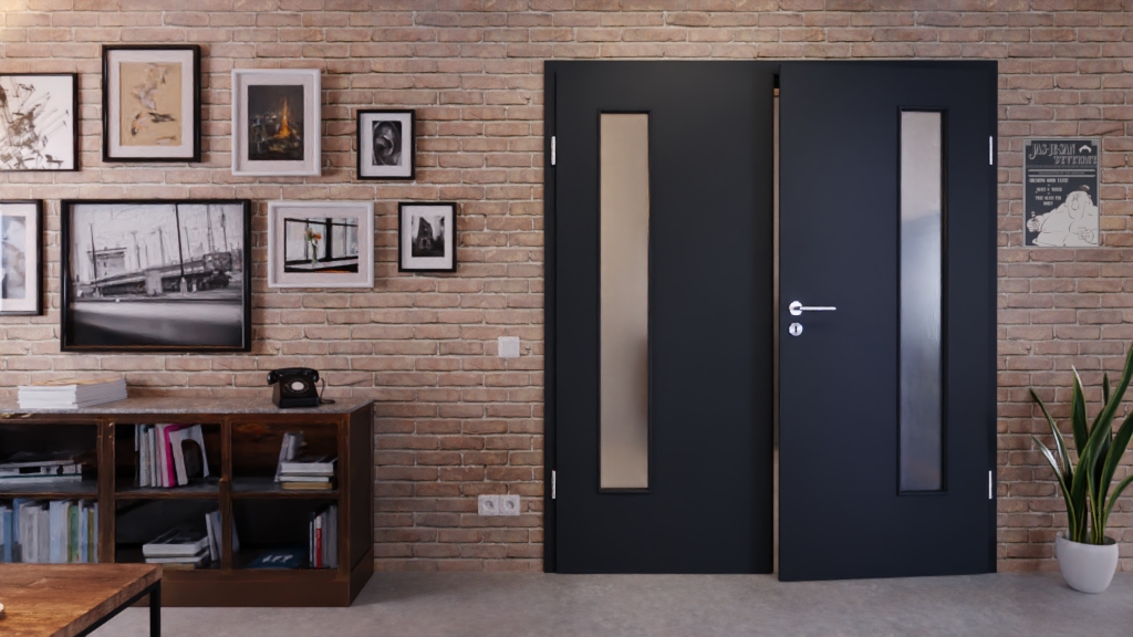 Drzwi wewnętrzne podwójne z przeszkleniem i odporną na ścieranie powierzchnią: