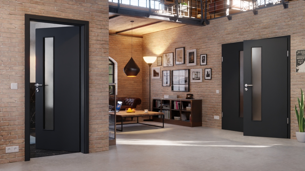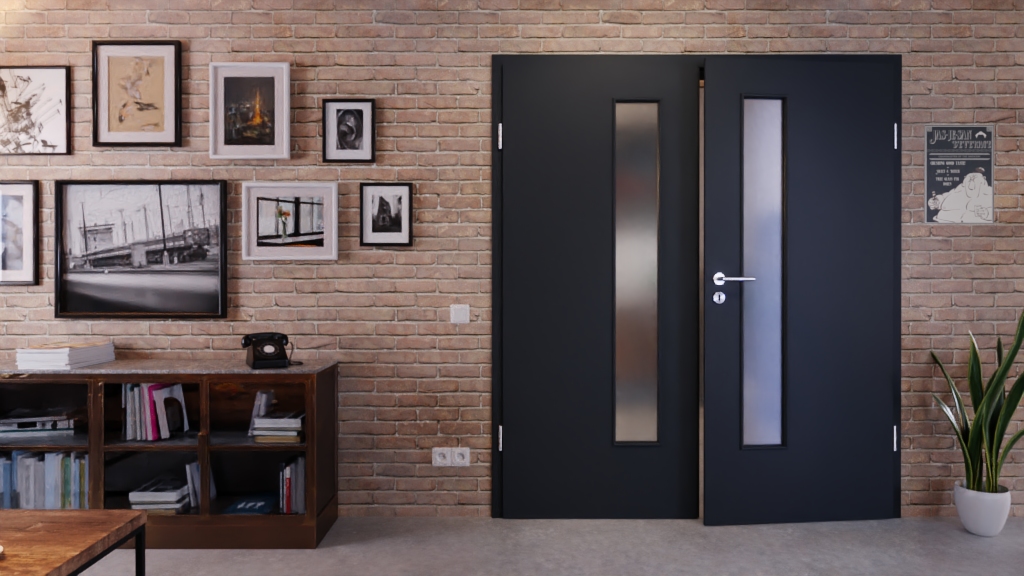 Dwuskrzydłowy model drzwi z przeszkleniem i odporną na UV powłoką: