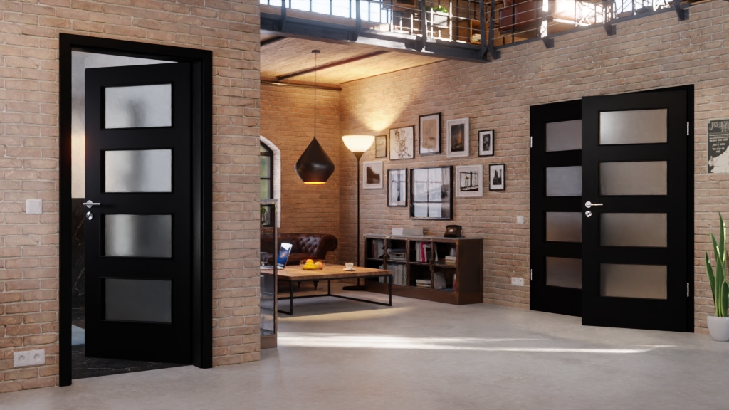 Model drzwi podwójnych z wlotem szklanym i dekoracją odporną na UV: