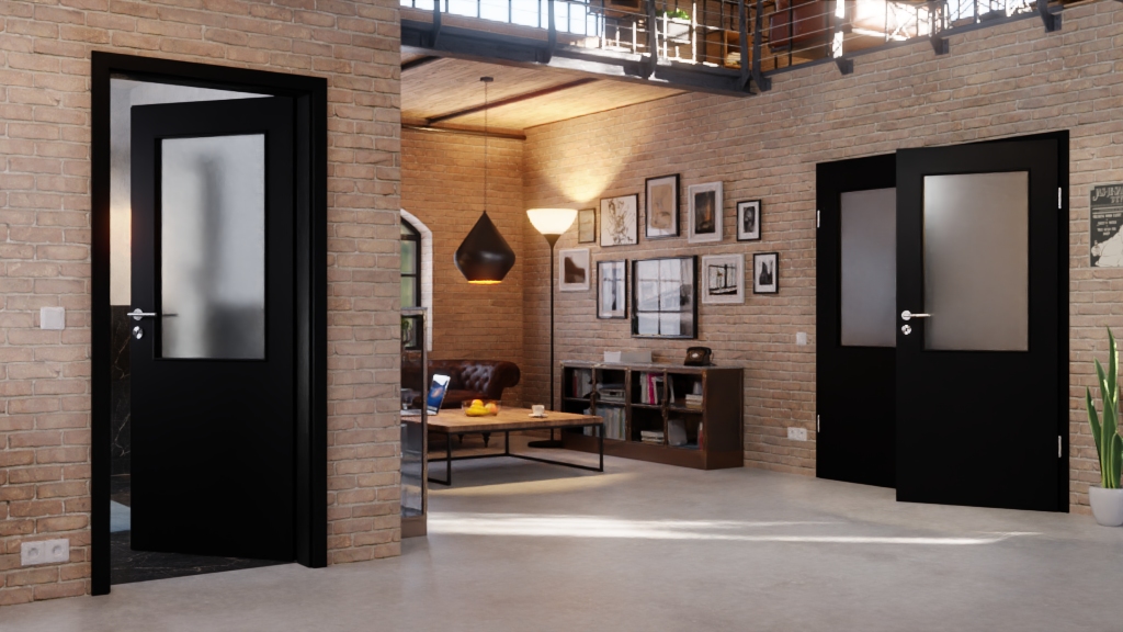 Drzwi wewnętrzne podwójne z przezroczystym charakterem i odporną na zarysowania powłoką: