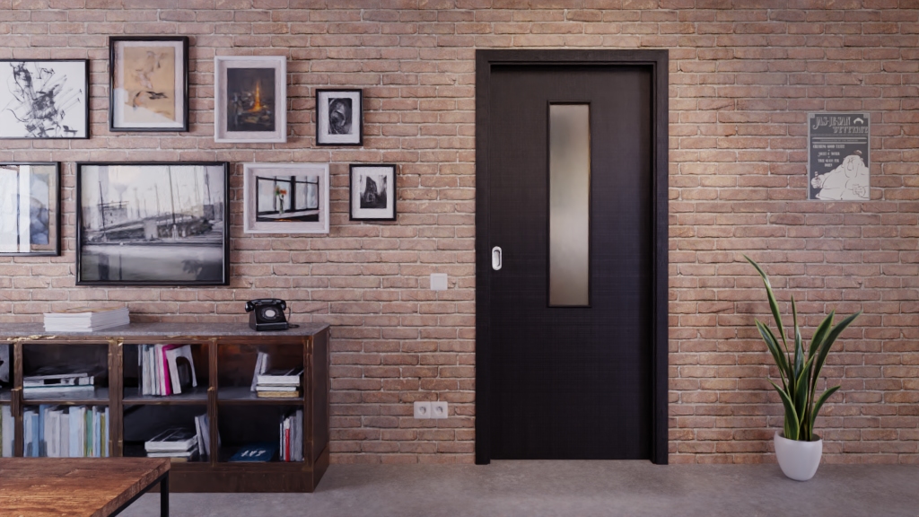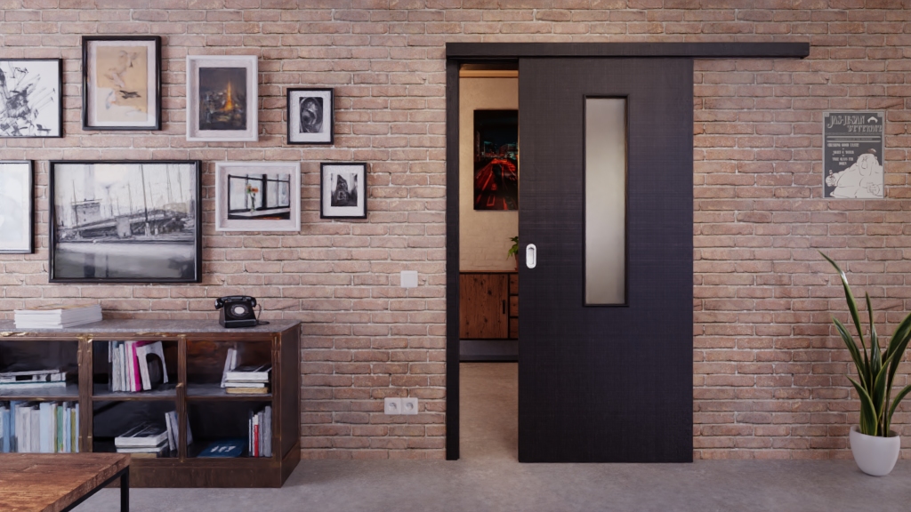 Nowoczesne drzwi przesuwne z dekoracją odporną na zarysowania w KOLORZE: