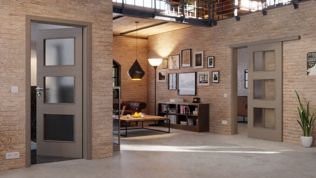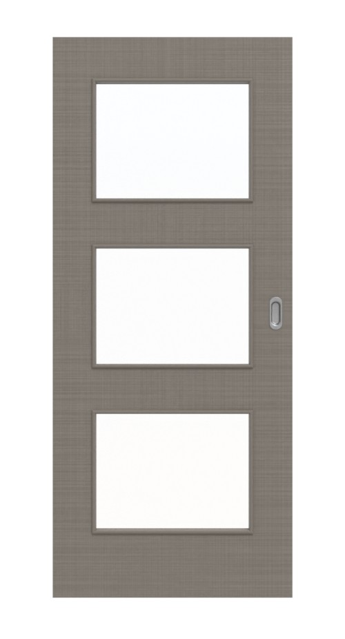 Dzięki delikatnym liniom powstaje naturalny wzór na szaro-brązowym dekorze tekstylnym. Możesz go doświadczyć również dotykowo dzięki wytłoczonej strukturze. Ponieważ warstwa wierzchnia jest odporna na ścieranie i zarysowania, łatwo można ją oczyścić z codziennych zabrudzeń. Trzy otwory świetlne kształtują design eleganckiego skrzydła drzwiowego.