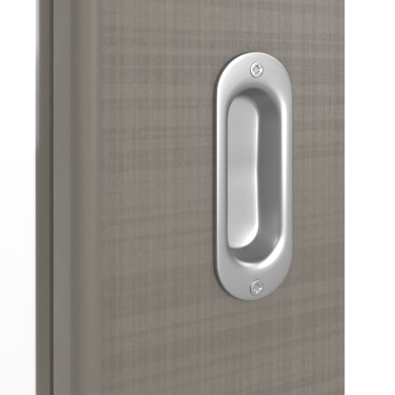 Dzięki płycie pełnej w rdzeniu model jest odporny na codzienne uderzenia. Wbudowana prowadnica podłogowa zapewnia niezawodne ruchy przesuwne drzwi. Dołączona muszla uchwytowa jest wizualnie dopasowana do skrzydła drzwiowego.