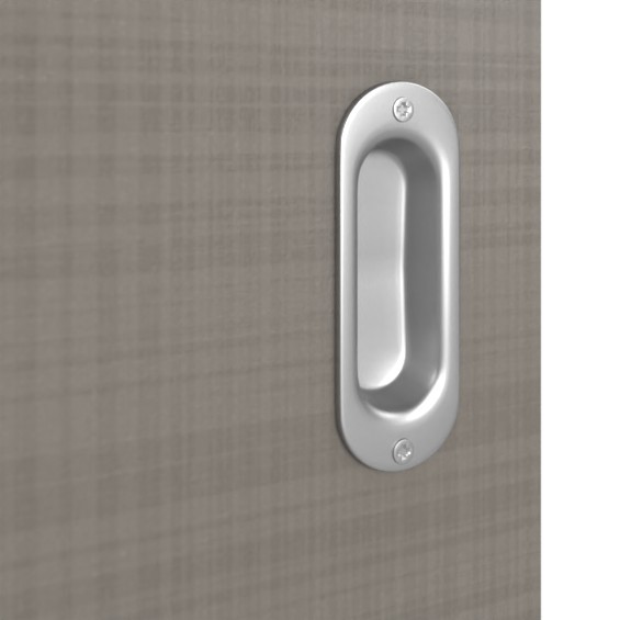 Gwarantowana komfortowa obsługa: Eleganckie wykończenie powierzchni drzwi przesuwnych w kolorze Cotton Like Taupe z serii Versio od Lebo sprawia, że model ten przyciąga wzrok.