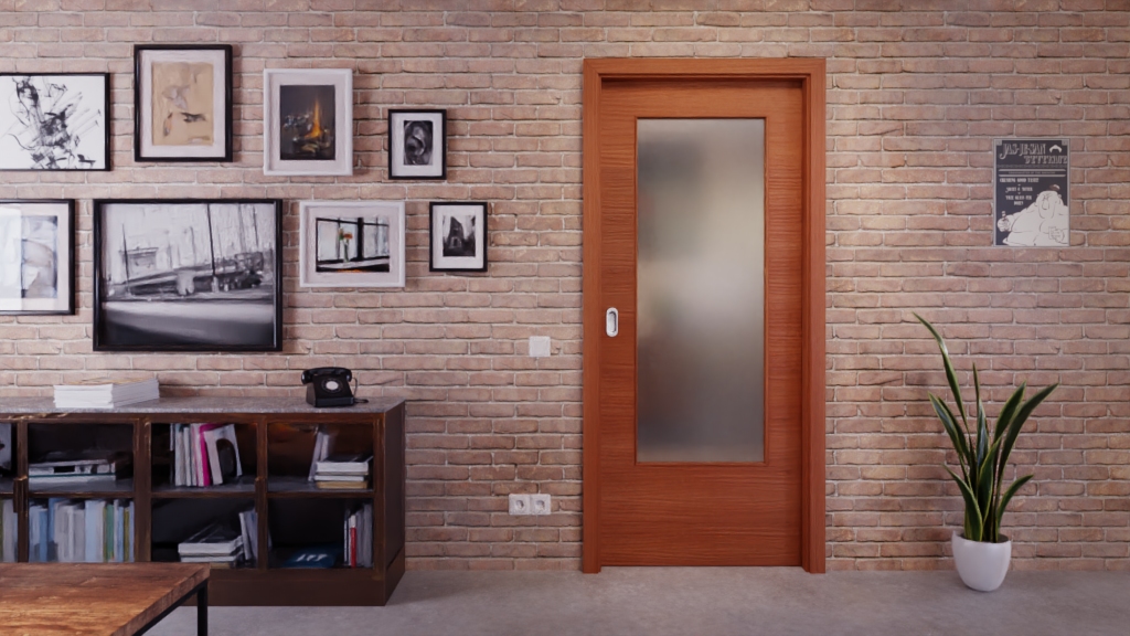 Odporność na uderzenia gwarantuje płyta wiórowa w rdzeniu. Dzięki prowadnicy podłogowej dołączonej do zestawu, skrzydło drzwiowe porusza się płynnie podczas użytkowania. Owalna muszla uchwytowa idealnie dopełnia wygląd fornirowanego skrzydła drzwiowego.