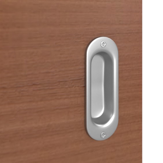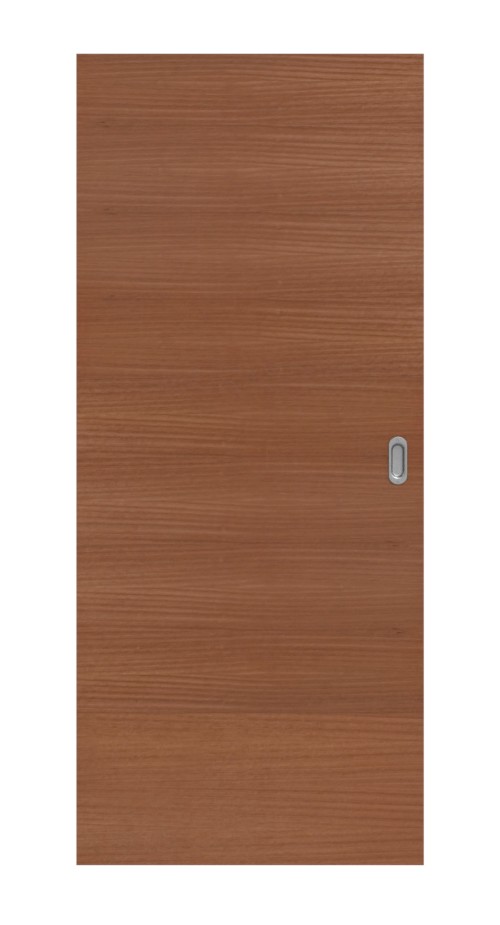 Wewnątrz skrzydła drzwi znajduje się płyta wiórowa, która skutecznie chroni przed codziennymi uderzeniami. W zestawie znajduje się również owalna muszla uchwytowa oraz rowek prowadzący, który zapewnia płynny ruch skrzydła drzwi pokrytego naturalnym fornirem.