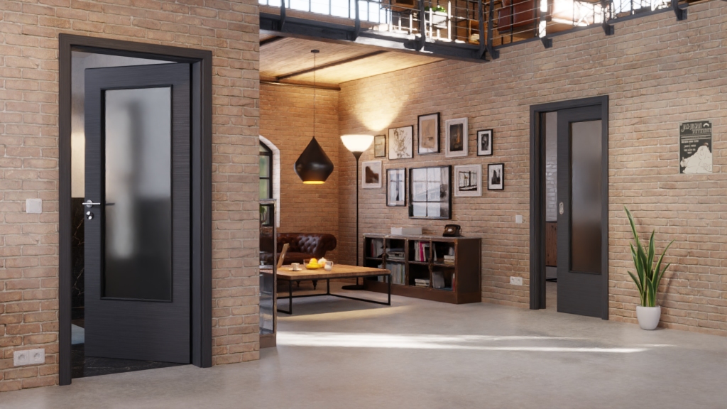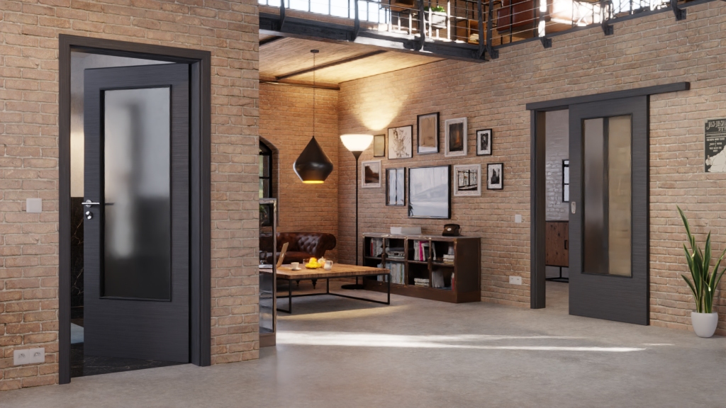 Nowoczesne drzwi przesuwne z łatwą w pielęgnacji dekoracją w KOLORZE: