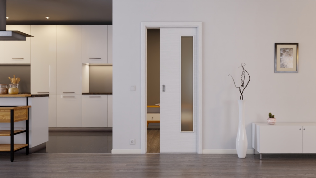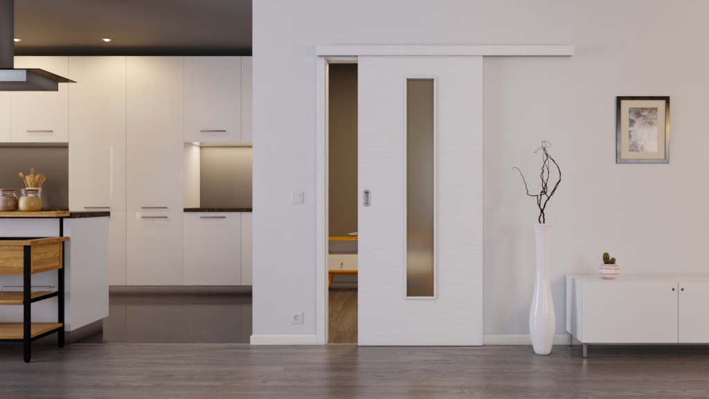 Stabilne drzwi przesuwne z odporną na ścieranie dekoracją w komplecie z uchwytem: