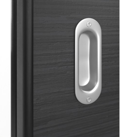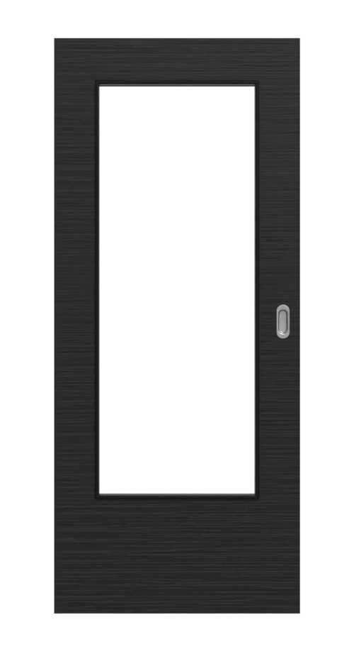 Gwarantowana komfortowa obsługa: Drzwi przesuwne w strukturalnej czerni podobnej do RAL 9005 z serii Versio od Lebo wyróżniają się niezwykłą powierzchnią.