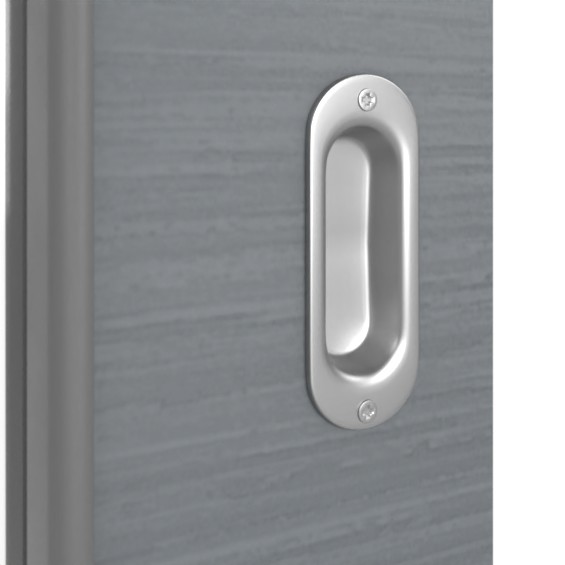 Płyta pełnoobwodowa w rdzeniu stanowi niezawodną barierę przeciwko codziennym obciążeniom. Zużycie drzwi przesuwnych zmniejsza się dzięki gładkiemu ruchowi w dostarczonym prowadzeniu podłogowym. Dodatkowym elementem wykończenia jest uchwyt wpuszczany.
