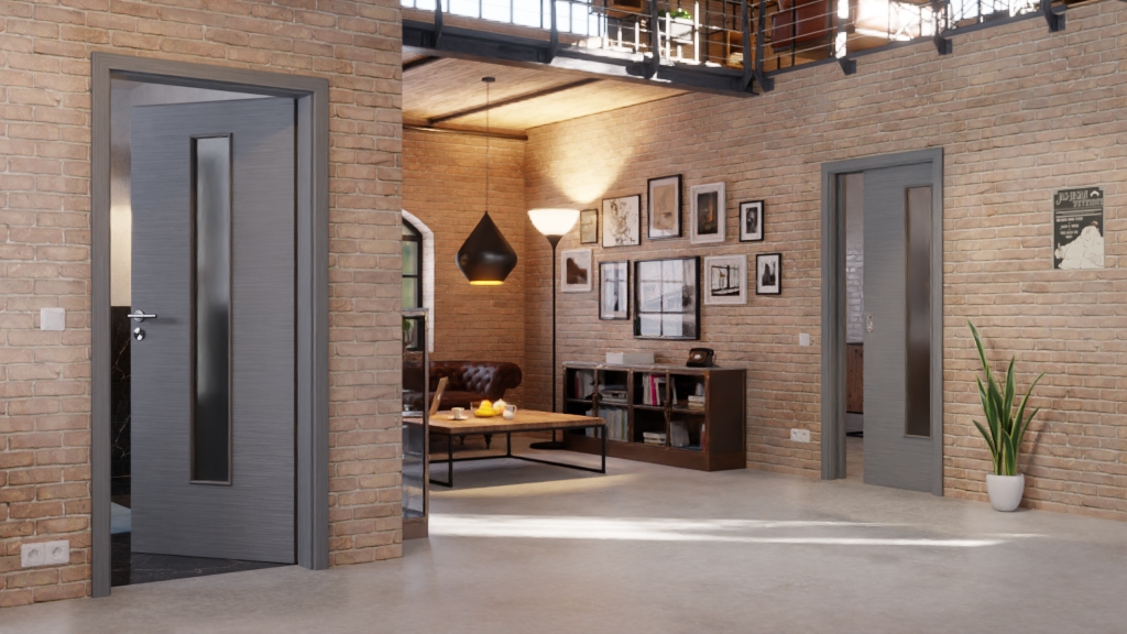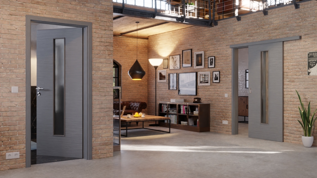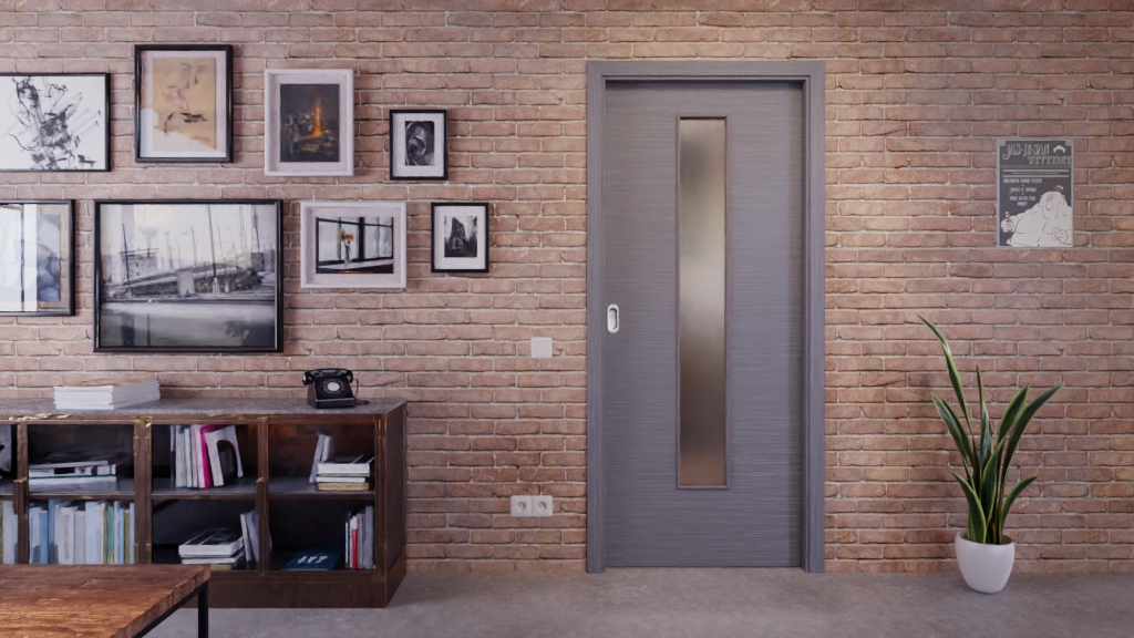 Nowoczesne drzwi przesuwne z odpornym na zarysowania wykończeniem, w tym uchwyt: