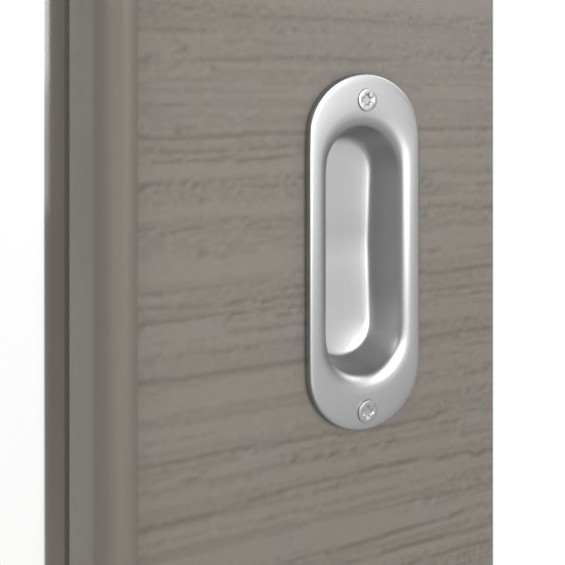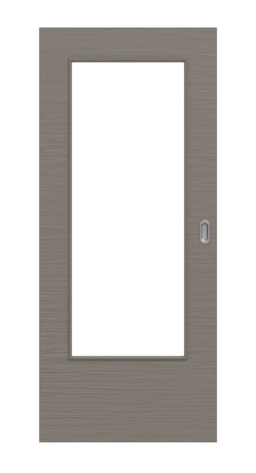 Płyta pełnoobwodowa w rdzeniu stanowi niezawodną barierę przeciw codziennym obciążeniom. Wbudowana prowadnica podłogowa zapewnia niezawodne ruchy przesuwne drzwi. Dołączony uchwyt jest wizualnie dopasowany do skrzydła drzwiowego.