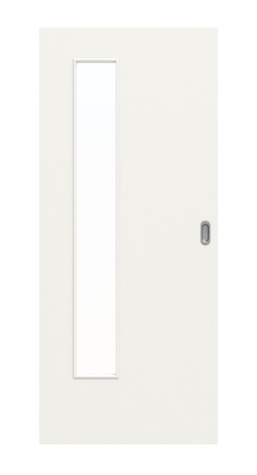 Gwarancja komfortowego uchwytu: Eleganckie wykończenie powierzchni drzwi przesuwnych w ultramatowej bieli podobnej do RAL 9016 z serii Versio od Lebo sprawia, że model przyciąga wzrok.