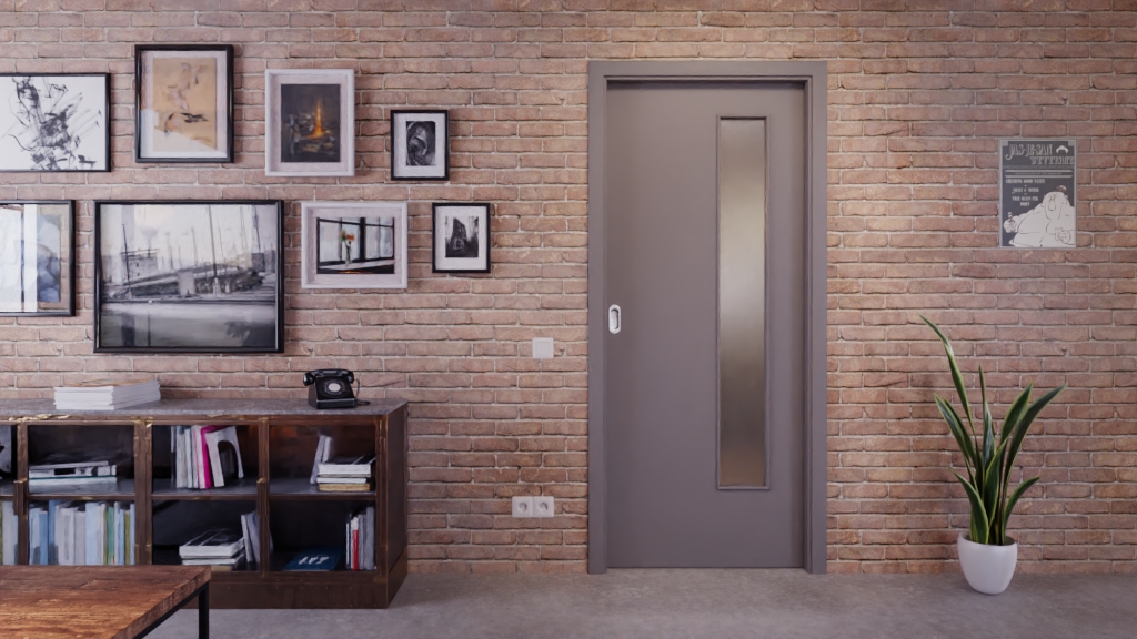 Dla komfortowego mieszkania: Wyrazisty design powierzchni sprawia, że drzwi przesuwne w ultramatowym szarym Hygge, podobne do RAL 7037 z serii Versio od Lebo to idealny wybór.
