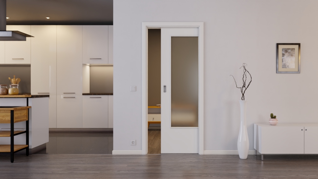 Stylowe drzwi z powłoką odporną na zarysowania i prowadnicą podłogową: