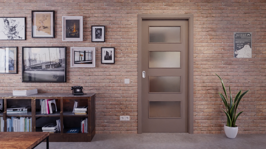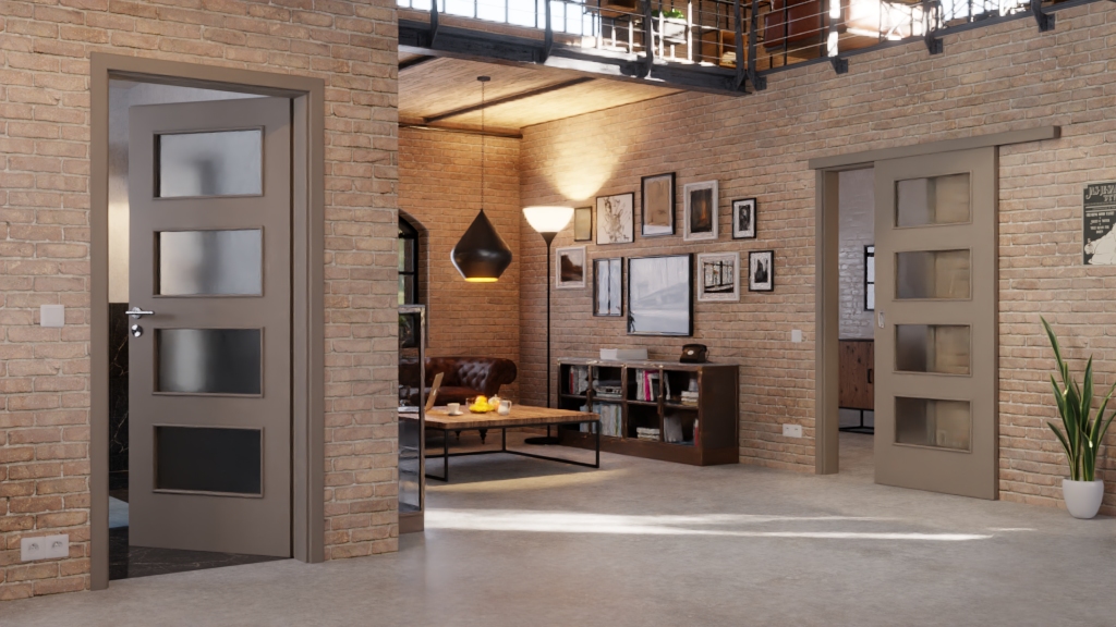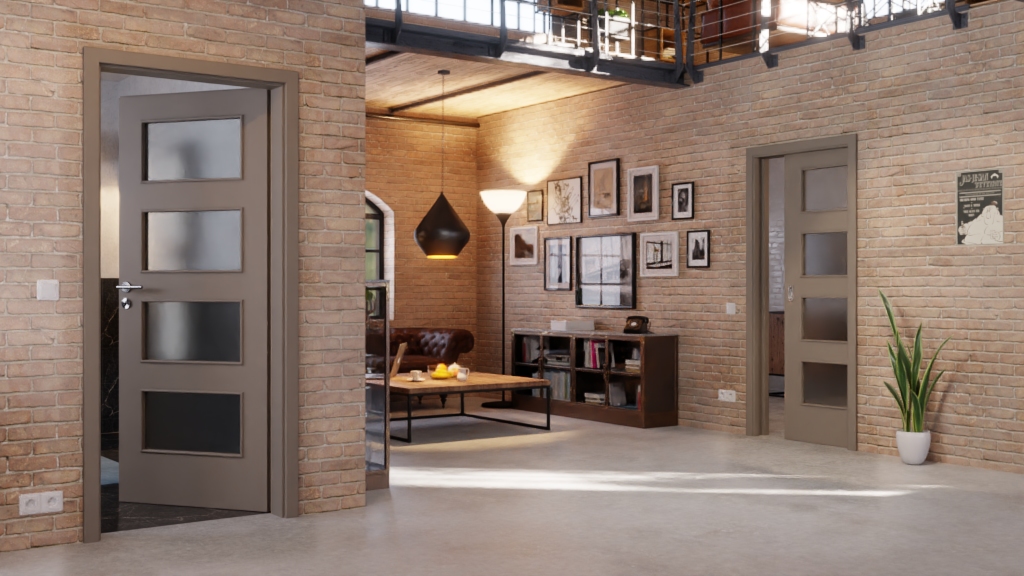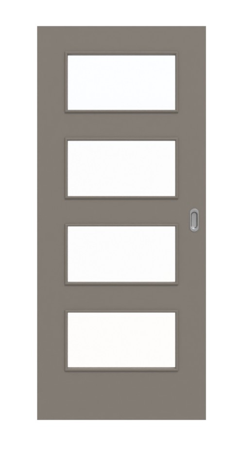 Odporność na ścieranie i zarysowania charakteryzuje szaro-brązową powierzchnię. Dzięki matowej powłoce z funkcją antyodciskową nie musisz się martwić o codzienny brud i nieestetyczne odciski. Cztery otwory świetlne nadają charakteru skrzydłu drzwiowemu.