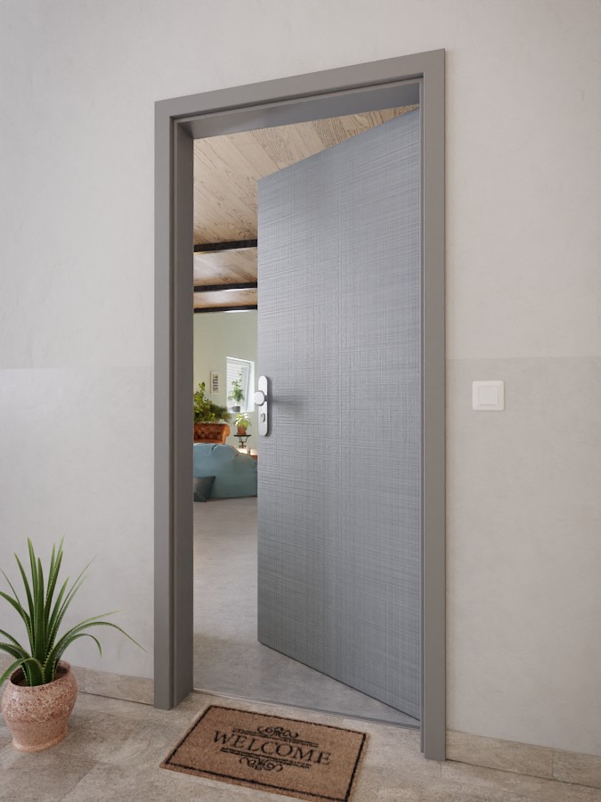 Wewnątrz znajduje się płyta wiórowa, co nadaje drzwiom wejściowym stabilny charakter. Dodatkowo opuszczana uszczelka podłogowa redukuje hałas i przeciągi. Oprócz zamka cylindrycznego w standardowym wyposażeniu znajdują się dwa trójczęściowe zawiasy.