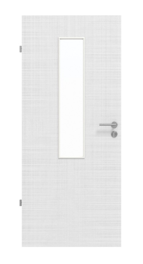 Aby skrzydło drzwiowe było chronione przed codziennymi uderzeniami, jego rdzeń wykonany jest z płyty wiórowej pełnej. Do solidnego mocowania między skrzydłem a ościeżnicą w zestawie znajdują się oprócz listew szklanych i zamka z wieloma kluczami 2-częściowe zawiasy.