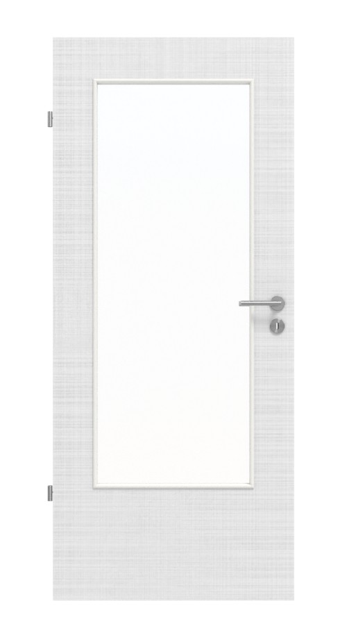 W rdzeniu skrzydła drzwi, które ma kanciaste krawędzie, znajduje się płyta pełnoobwodowa, która zapewnia codzienną stabilność. W zestawie oprócz zamka wielozadaniowego i listew szklanych znajdują się dwuczęściowe zawiasy, które niezawodnie mocują skrzydło drzwi w ramach.