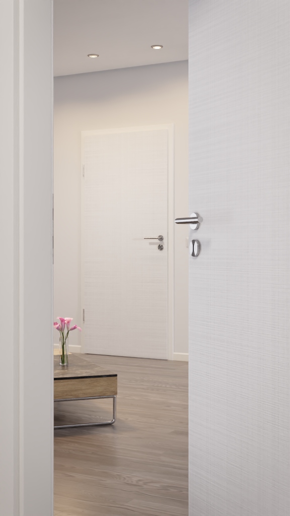 Stylowy design, który pozostaje: Drzwi wewnętrzne w kolorze Cotton Like White podobne do RAL 9016 z serii Versio od Lebo zachwycają zarówno wyglądem, jak i funkcjonalnością.