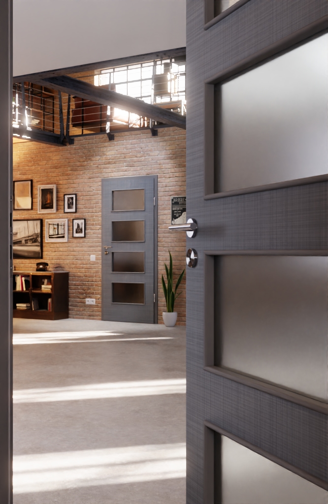 UV-odporne drzwi wewnętrzne z łatwą w pielęgnacji powłoką i przeszkleniem: