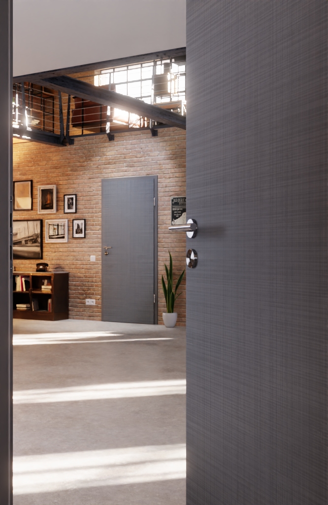 Stylowy design, który pozostaje: Można polegać na funkcjonalności ekstrawaganckich drzwi wewnętrznych w kolorze Cotton Like Hygge Szary, podobnym do RAL 7037 z serii Versio od Lebo.