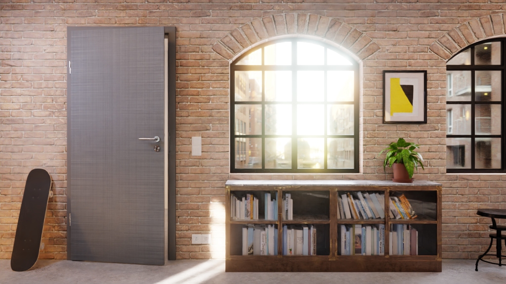 Płyta wiórowa stanowi rdzeń skrzydła drzwiowego z kanciastymi krawędziami, co chroni model przed codziennymi uderzeniami. Oprócz zamka wielozadaniowego, w zestawie znajdują się 2-częściowe zawiasy, które solidnie mocują skrzydło w ościeżnicy.