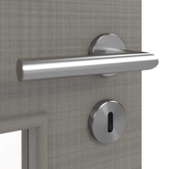 W rdzeniu skrzydła drzwiowego, które ma kanciaste krawędzie, znajduje się płyta pełnoobwodowa, która zapewnia codzienną stabilność. Oprócz listew szklanych i zamka wielozadaniowego, 2-częściowe zawiasy są standardowym wyposażeniem.