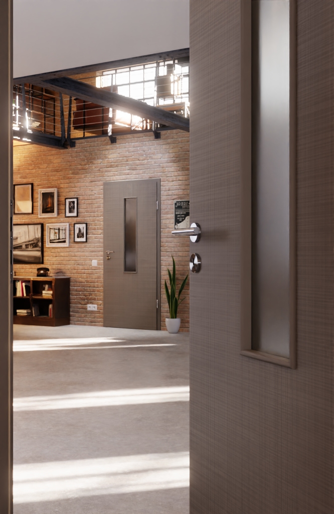 Drzwi odporne na zarysowania z imponującą powłoką i wbudowanym przeszkleniem: