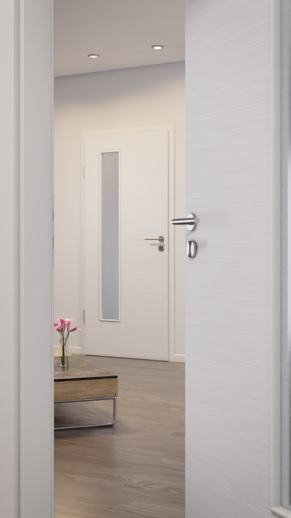 Drzwi odporne na zarysowania z eleganckim wykończeniem powierzchni i zintegrowanym przeszkleniem: