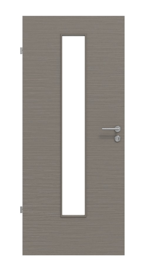 Dzięki reliefowej strukturze, która jest wytłoczona w szaro-brązowej powierzchni, powstają interesujące efekty światła i cienia, nadając modelowi naturalny charakter. Powierzchnia jest łatwa w pielęgnacji i jest niezawodnie odporna na zarysowania i ścieranie. Więcej światła w Twoim domu zapewnia okno świetlne, które jest umieszczone centralnie w skrzydle drzwiowym.