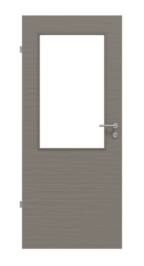 Dzięki strukturze osadzonej w szaro-brązowej warstwie wierzchniej powstają interesujące efekty świetlno-cieniowe. Wysoką trwałość zapewniają właściwości odporne na zarysowania i ścieranie. Dzięki szklanej wkładce, która zajmuje niemal cały górny obszar skrzydła drzwi, do Twojego domu wpada dużo jasności.