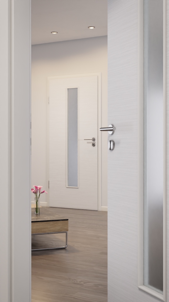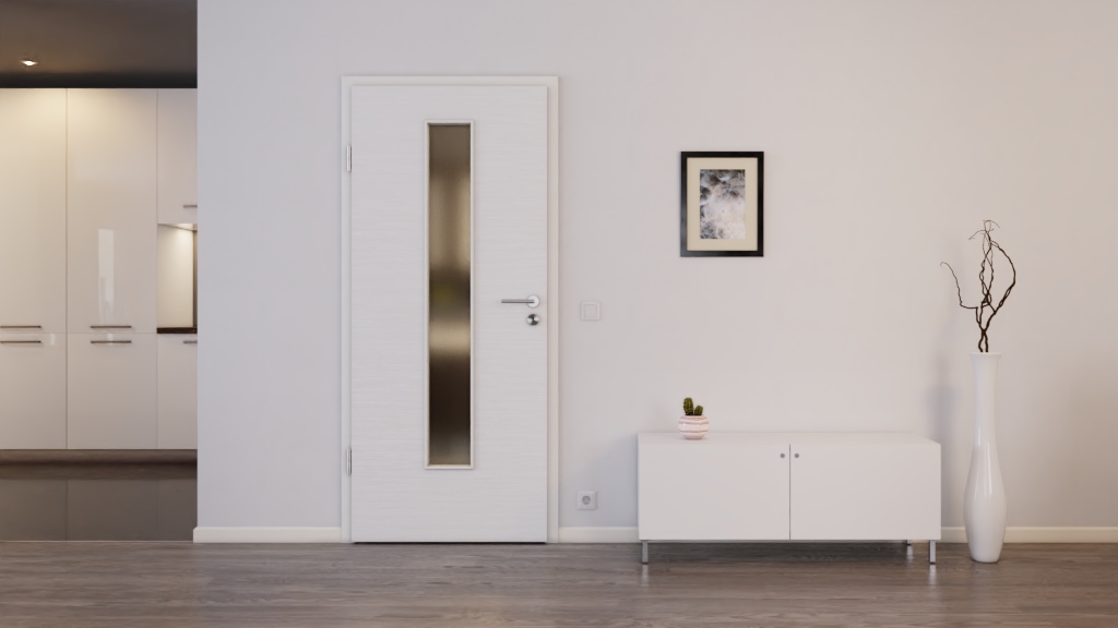 Model drzwi odporny na zarysowania z atrakcyjnym wykończeniem i wkładem szklanym: