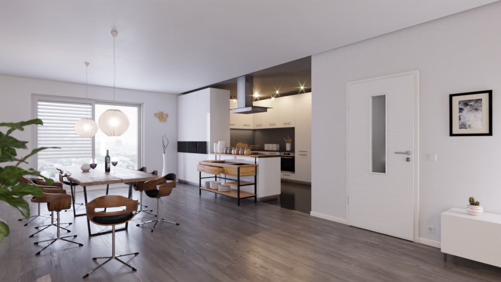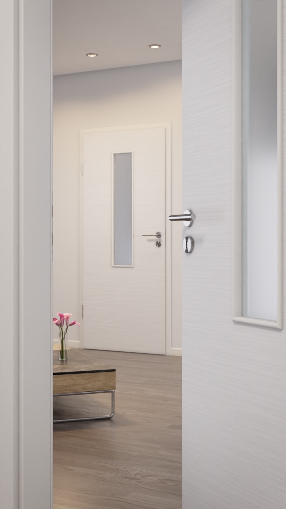 Drzwi wewnętrzne odporne na ścieranie z nietypową powłoką i wbudowanym otworem na światło: