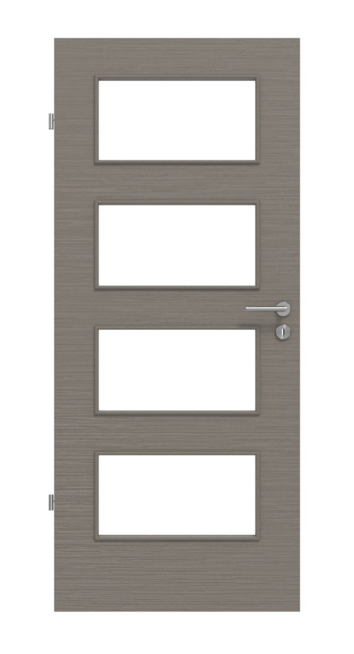 W rdzeniu skrzydła drzwi, które ma kanciaste krawędzie, znajduje się płyta pełnoobwodowa, która zapewnia codzienną stabilność. W zestawie oprócz zamka z wieloma kluczami i listew szklanych znajdują się dwuczęściowe zawiasy, które pewnie mocują skrzydło drzwi w ramach.