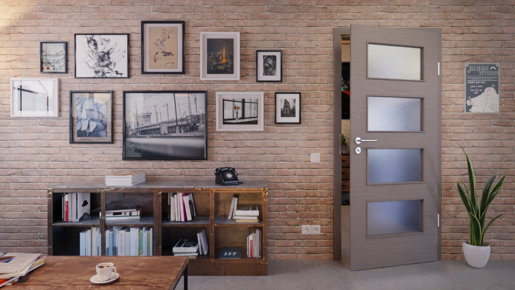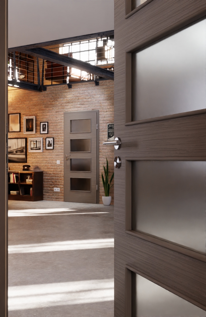 Model drzwi odporny na zarysowania z nietypową powłoką i zintegrowanym przeszkleniem: