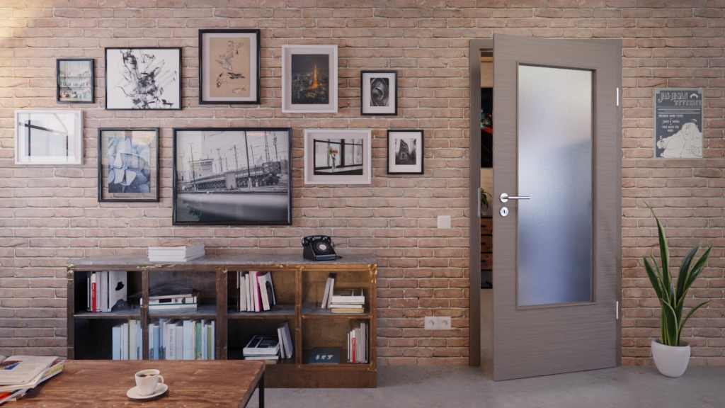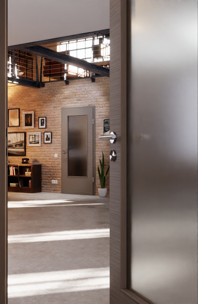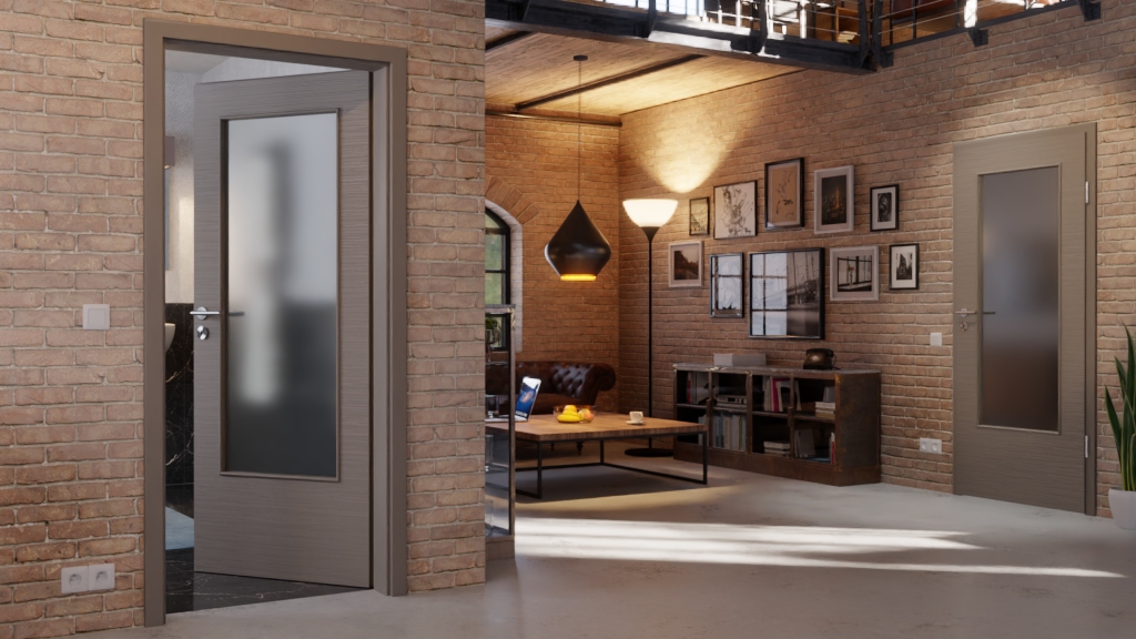 Stabilność spotyka nowoczesny wygląd: Dzięki drzwicom wewnętrznym w strukturalnym taupe z serii Versio od Lebo do Twojego wnętrza wkracza więcej przyjazności.