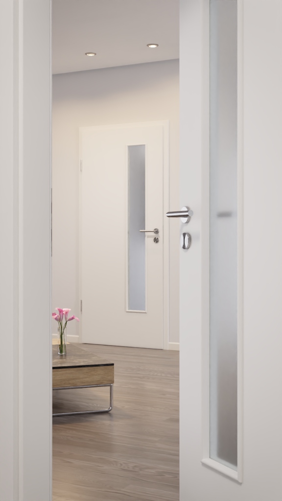Model drzwi odporny na zarysowania z nietypową powłoką i wbudowanym otworem na światło: