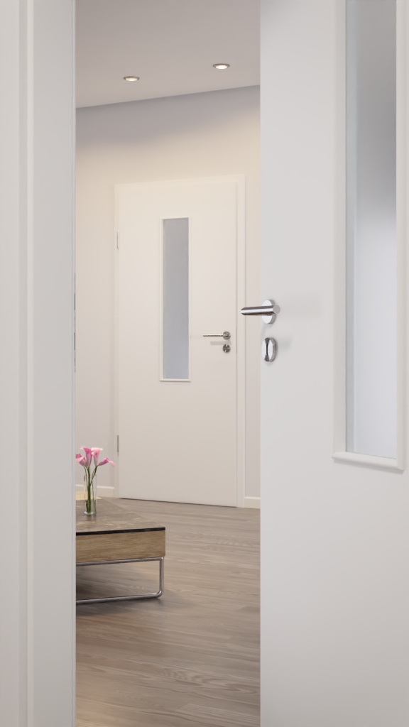 Wewnętrzne drzwi odporne na UV z nietypową powłoką i wbudowanym otworem świetlnym: