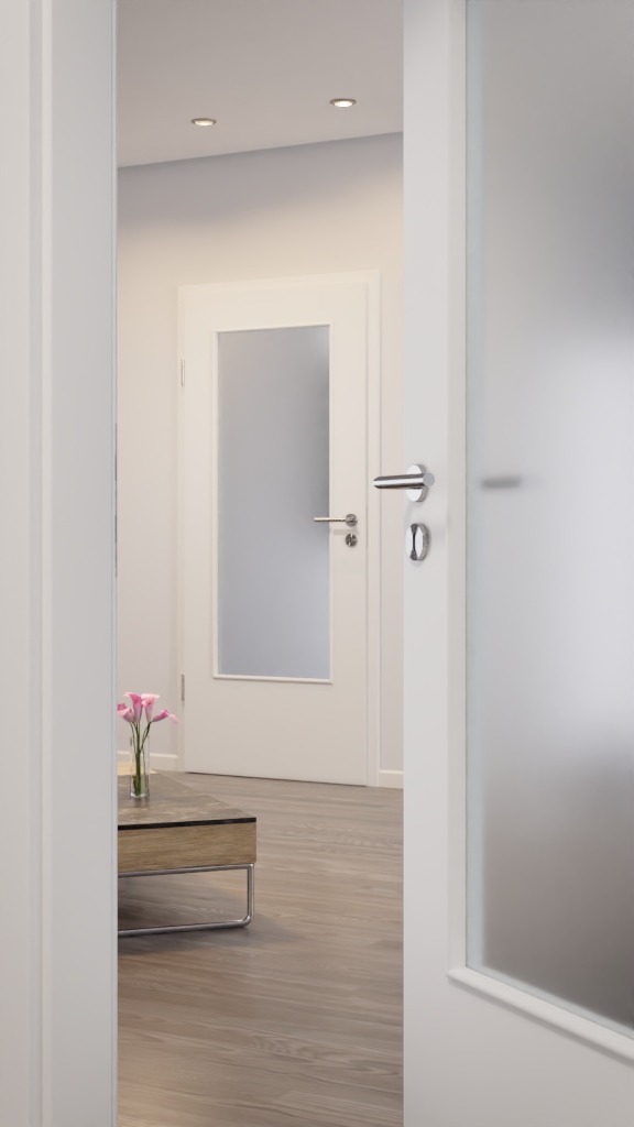 Drzwi odporne na zarysowania z łatwą w pielęgnacji powłoką i wkładem szklanym: